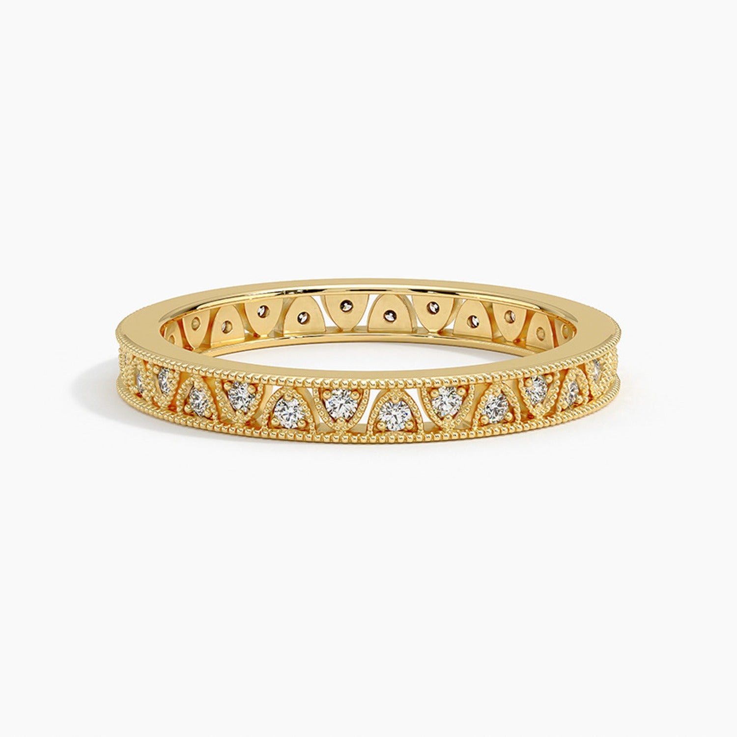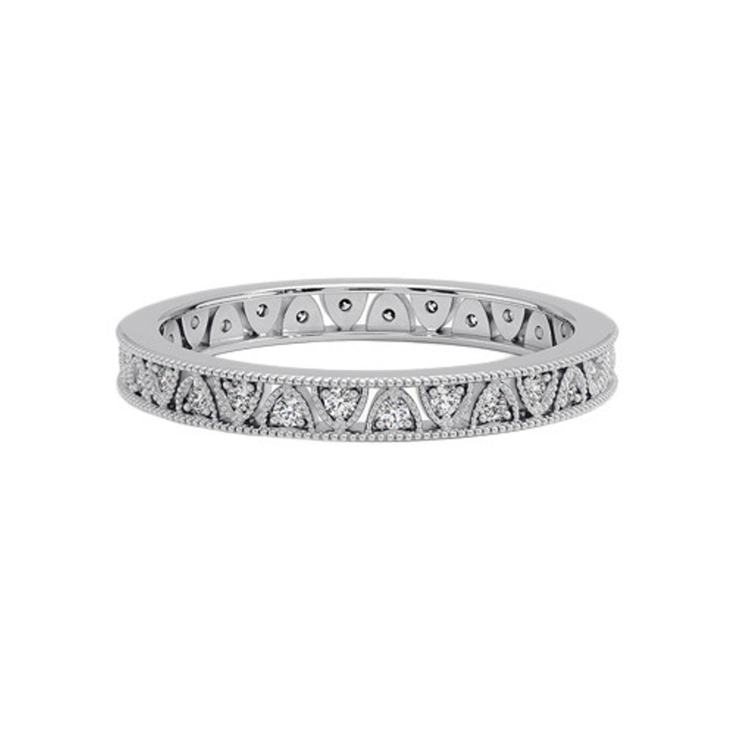 This elegant diamond eternity ring showcases timeless craftsmanship with its intricate design and brilliant sparkle. Crafted in high-quality white gold, the band features finely set round diamonds arranged in a delicate pattern that highlights luxury and sophistication. Its polished finish and detailed milgrain edges add vintage charm, making it perfect for weddings, anniversaries, or everyday elegance. Designed for lasting beauty, this diamond band offers exceptional brilliance and durability. Ideal for gifting or personal wear, this stylish eternity ring complements any jewelry collection and enhances every look with refined shine and modern elegance.