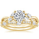 Embrace elegance with the Radiant Bloom Set, a refined jewelry ensemble crafted in radiant rose gold. This captivating set includes a striking pendant necklace and matching stud earrings, each showcasing a brilliant round-cut diamond secured in a unique crown-like floral setting. The pendant is elevated by a vertical bail adorned with smaller pavé-set diamonds, adding an extra layer of sophistication and shimmer.
