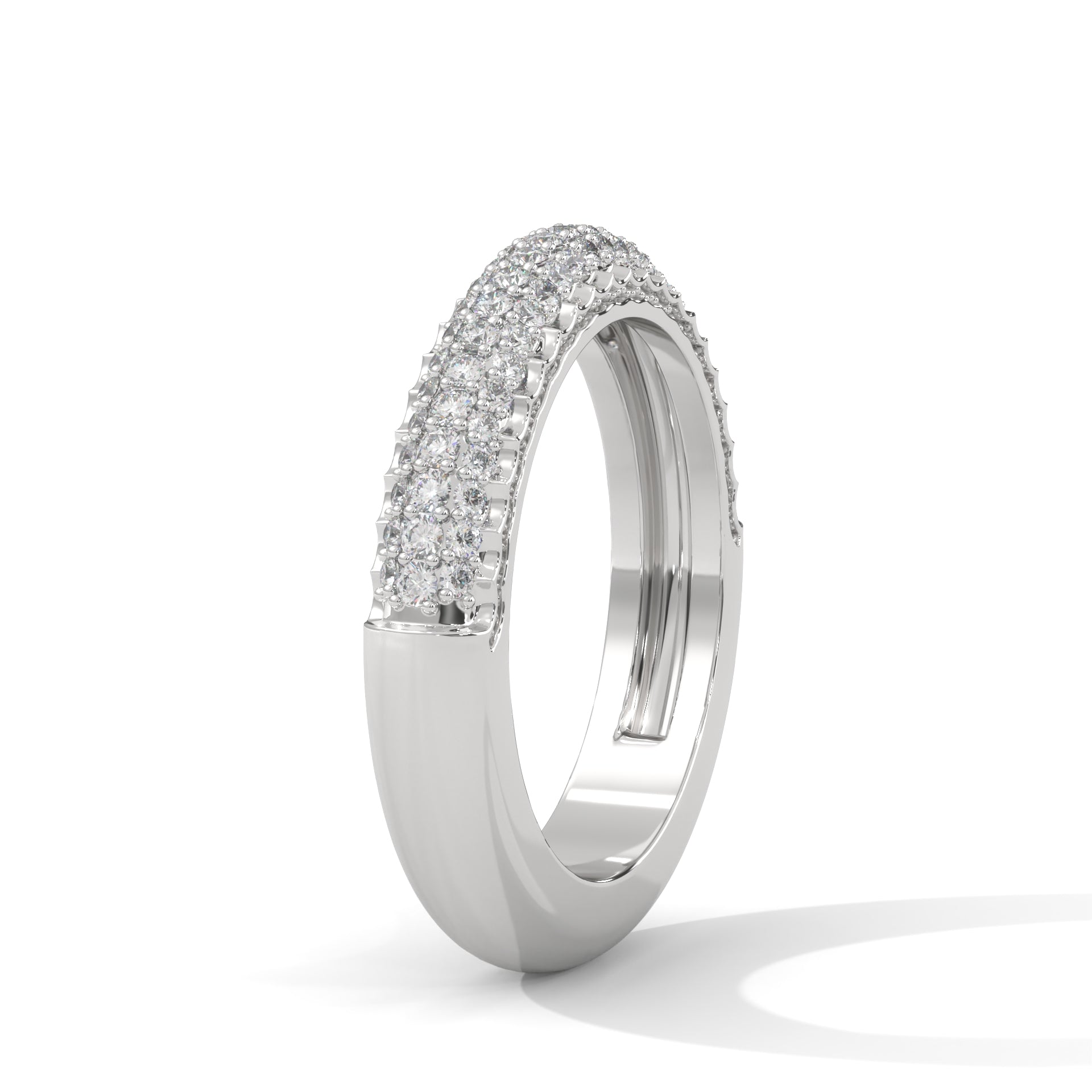 Wrap your finger in light with the Golden Glow Band, a brilliant celebration of elegance and luxury. This stunning yellow gold ring features three impeccably set rows of round pavé diamonds that shimmer with every movement.Crafted for maximum brilliance and comfort, its rounded silhouette ensures a sleek, smooth fit while enhancing the dramatic sparkle. Whether worn as a wedding band, a stacking piece, or a bold solo statement, the Golden Glow Band elevates your style with timeless shine.