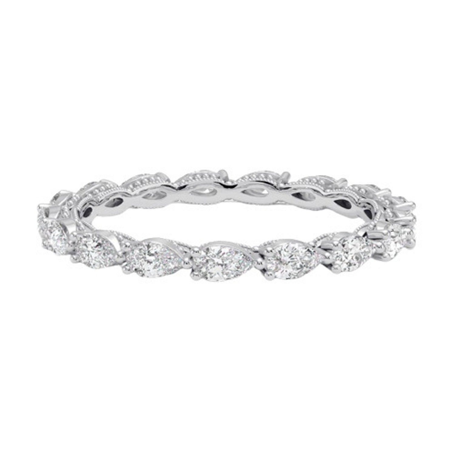 This exquisite pear-shaped diamond eternity ring is designed to bring timeless elegance and radiant brilliance to every moment. Crafted in luxurious yellow gold, it features a continuous row of shimmering pear-cut diamonds arranged in a delicate, alternating pattern for maximum sparkle. The intricate milgrain detailing adds a touch of vintage charm, enhancing its sophisticated appeal. Perfect as a wedding band, anniversary ring, or statement piece, this diamond eternity band offers exceptional craftsmanship and lasting beauty. Its refined design, superior shine, and luxurious finish make it an ideal choice for anyone seeking a stunning and meaningful fine-jewelry masterpiece.
