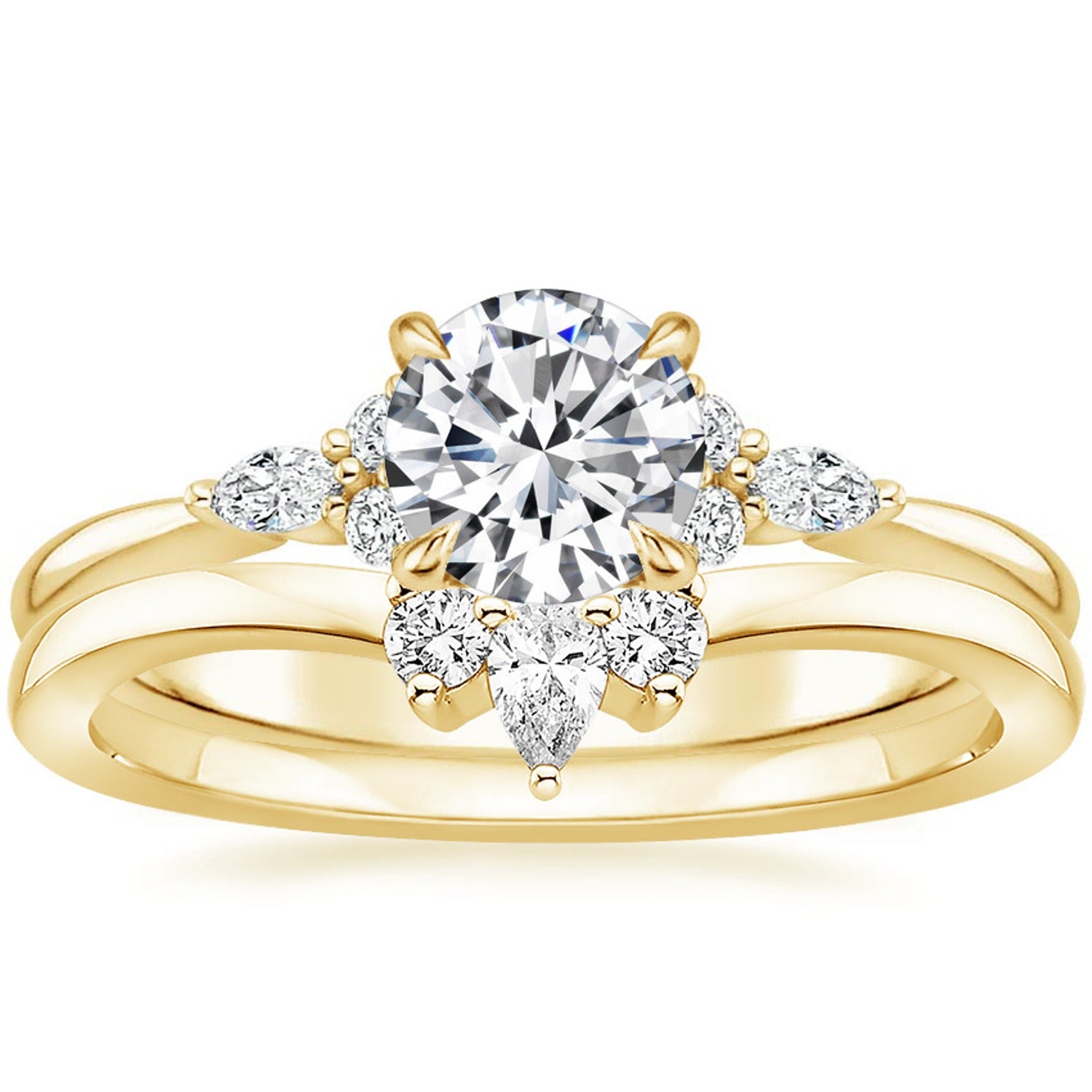 This breathtaking diamond ring showcases a brilliant round-cut center stone set in luxurious yellow gold, surrounded by an elegant arrangement of pear-shaped and round accent diamonds. Designed with exceptional craftsmanship, this statement ring blends timeless beauty with modern sophistication. Its radiant sparkle, flawless detailing, and graceful structure make it the perfect choice for engagement, anniversaries, or any unforgettable moment. Crafted to enhance brilliance and durability, this diamond ring delivers unmatched elegance and premium quality. Ideal for those seeking a unique yellow gold diamond ring, this exquisite piece symbolizes love, luxury, and everlasting commitment.