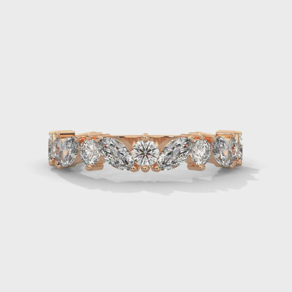 Half eternity wedding band with Marquise and Round cut lab grown Diamond for