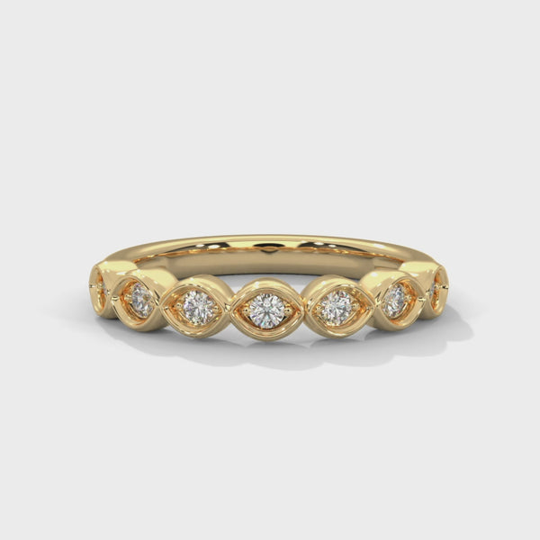 This Lab Grown Diamond Gold Ring captures timeless beauty through its marquise-inspired design, blending modern charm with classic elegance. Each round brilliant-cut lab-grown diamond is encased within a marquise-shaped bezel, creating a delicate rhythm of sparkle and symmetry across the band.