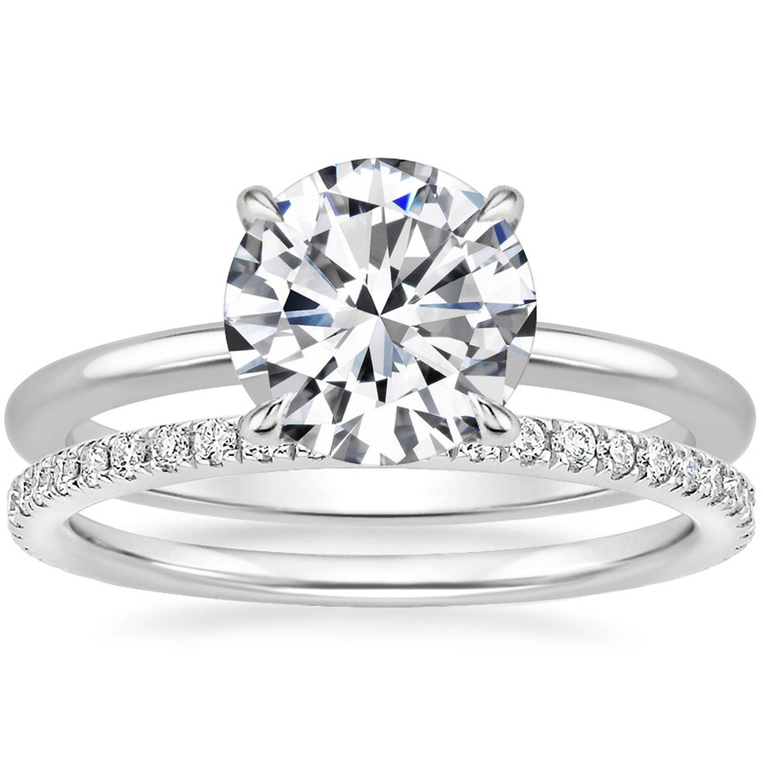 Experience timeless brilliance with this stunning round-cut diamond engagement ring, expertly crafted in sleek white gold. The classic claw-prong setting elevates the center stone, maximizing sparkle and light reflection from every angle. A delicate pavé diamond band adds refined elegance, creating a perfect balance of simplicity and luxury. Designed for modern brides who adore sophisticated minimalism, this white gold diamond ring is ideal for engagements, anniversaries, or meaningful celebrations. Its premium craftsmanship, radiant shine, and enduring beauty make it a captivating symbol of everlasting love. Elevate your jewelry collection with this iconic, high-quality diamond solitaire engagement ring.