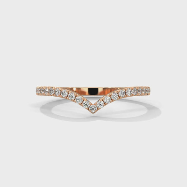 Stunning V-shape lab grown diamond ring. The sleek, modern contour perfectly hugs your finger, while the row of sparkling lab grown diamonds creates a captivating brilliance from every angle. A symbol of grace and sophistication, this ring blends timeless beauty with ethical craftsmanship — making it perfect for stacking, pairing with engagement rings, or wearing solo as a statement piece.