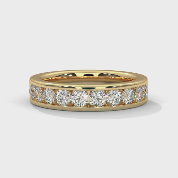 This Lab Grown Diamond Gold Ring embodies strength and sophistication in perfect harmony. Featuring a series of brilliant round-cut lab-grown diamonds securely channel-set within a sleek, polished gold band, this ring exudes timeless elegance and modern confidence.