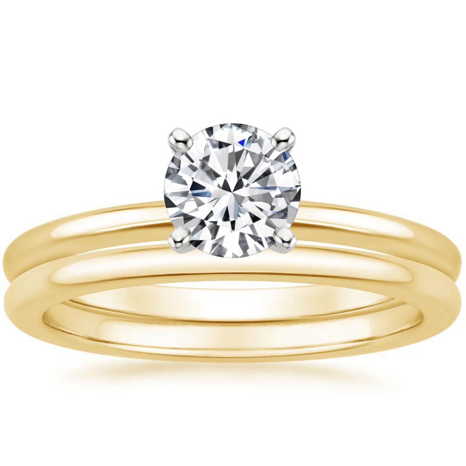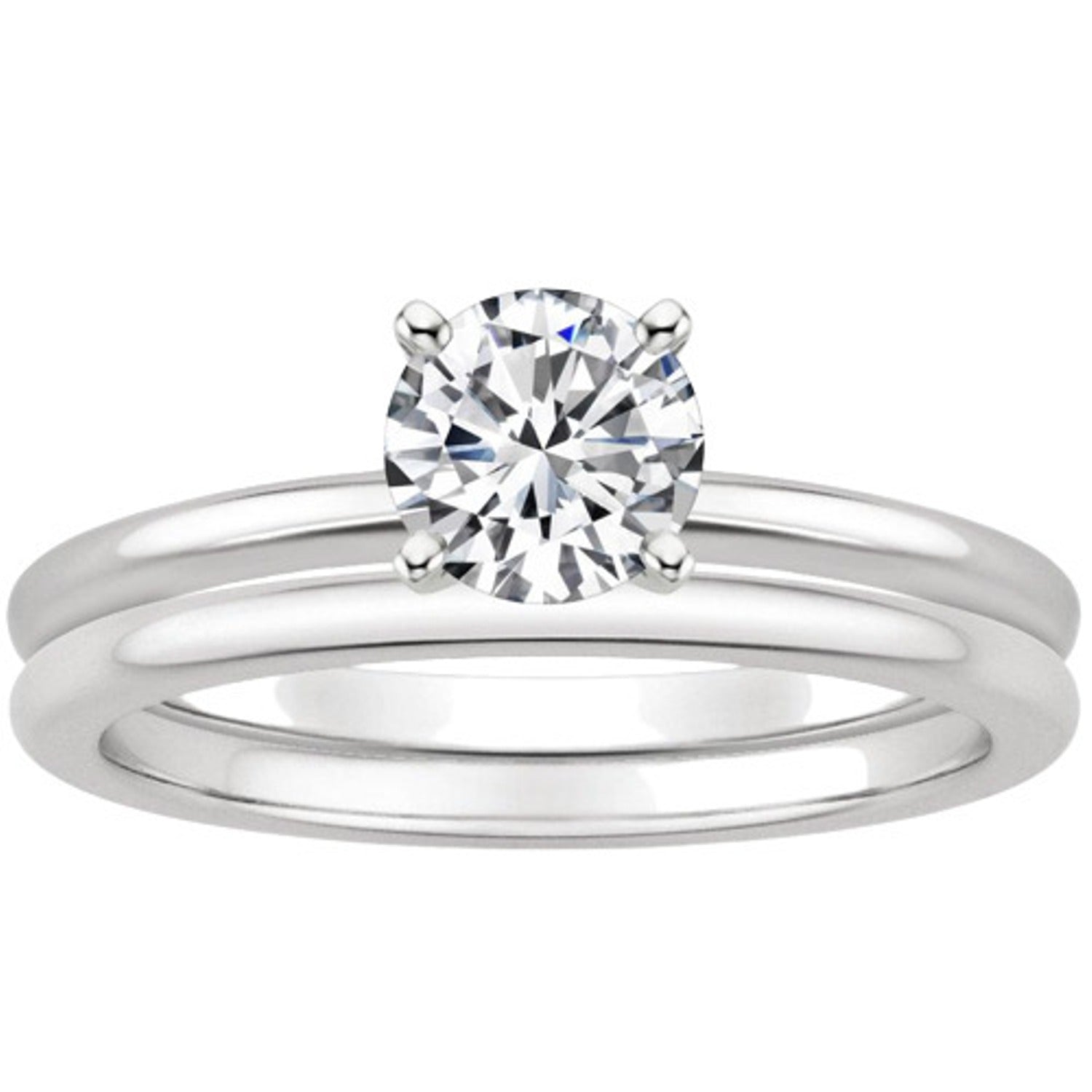 This stunning solitaire diamond wedding ring set features a brilliant round-cut center stone secured in a classic four-prong setting, offering maximum sparkle and timeless elegance. Crafted in polished white gold, the design includes a sleek engagement ring paired with a matching wedding band for a perfectly coordinated look. The minimalist style enhances the diamond’s natural brilliance, making it an ideal choice for modern brides who appreciate simplicity and sophistication. This elegant white gold diamond ring set is perfect for engagements, anniversaries, or special occasions. A luxurious symbol of love, crafted to shine beautifully every day.
