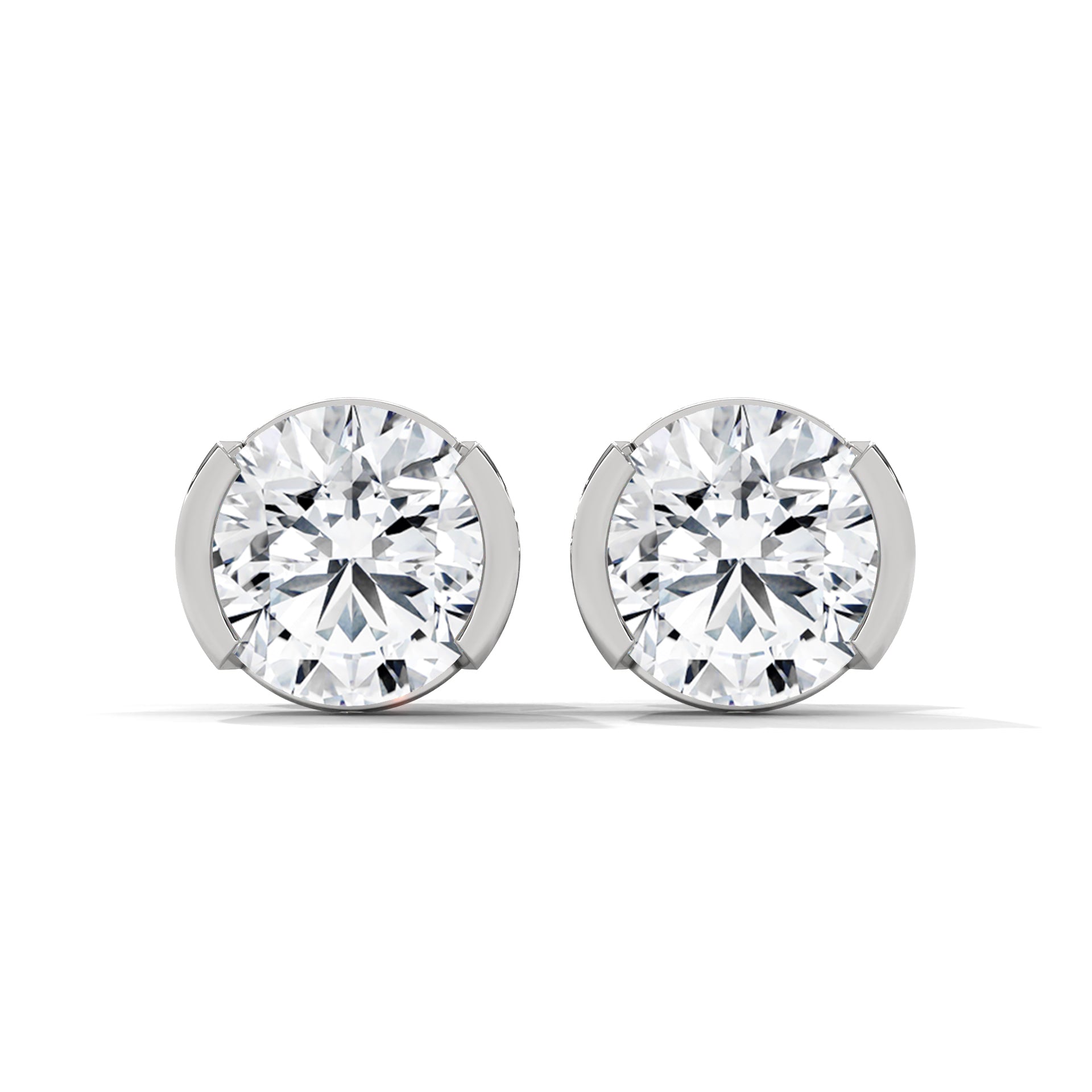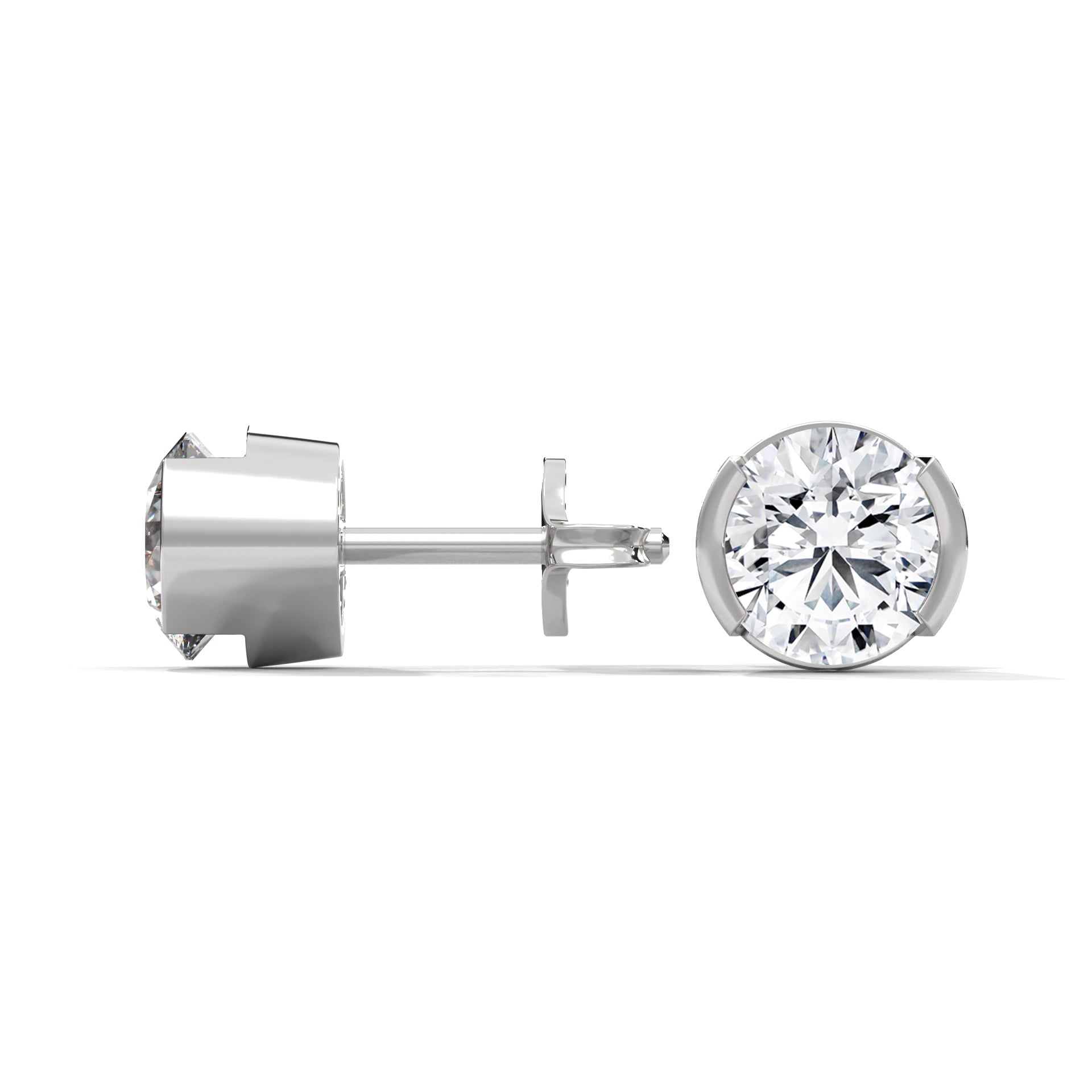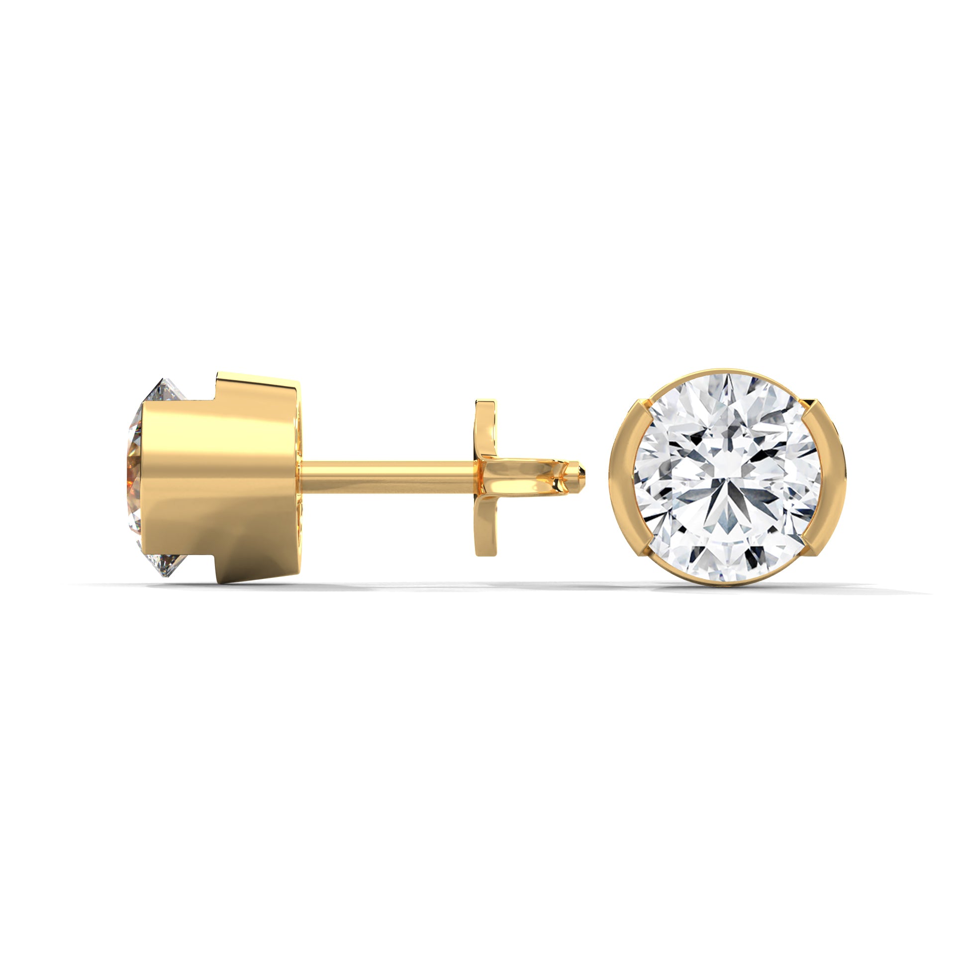 Modern Glow Half-Bezel Lab Grown Round Diamond Gold Stud Earrings