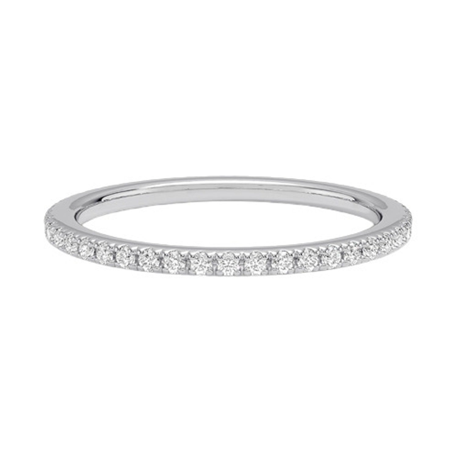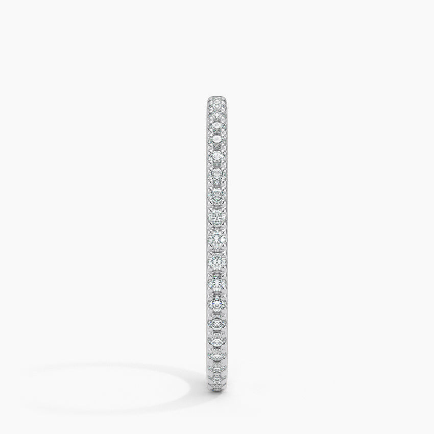 This elegant diamond eternity wedding band showcases timeless brilliance and refined craftsmanship, making it a perfect symbol of everlasting love. Expertly crafted in polished white gold, the ring features a row of meticulously set round-cut diamonds that offer exceptional sparkle from every angle. Its slim, delicate design makes it ideal for stacking or pairing with an engagement ring, while its classic style ensures it remains forever in fashion. Perfect for weddings, anniversaries, or luxurious everyday wear, this diamond band combines sophistication, durability, and radiant beauty. A stunning choice for anyone seeking a high-quality, minimalist, and elegant diamond ring.