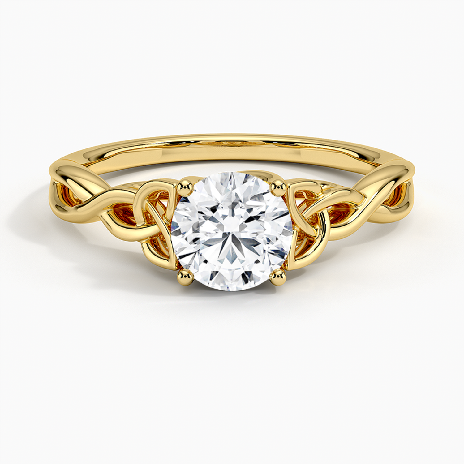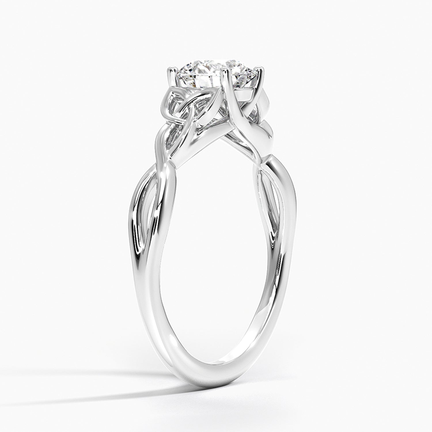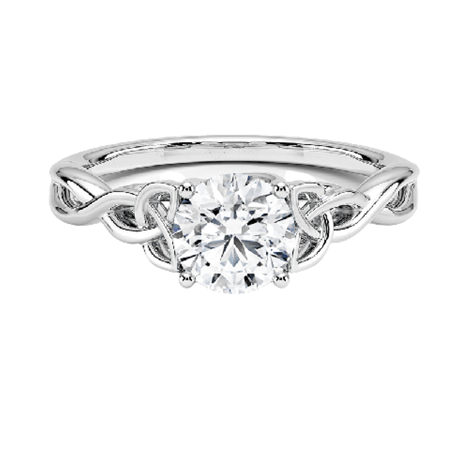 A round brilliant solitaire embraced by an intricate vine-inspired setting, intertwining elegance and organic artistry.