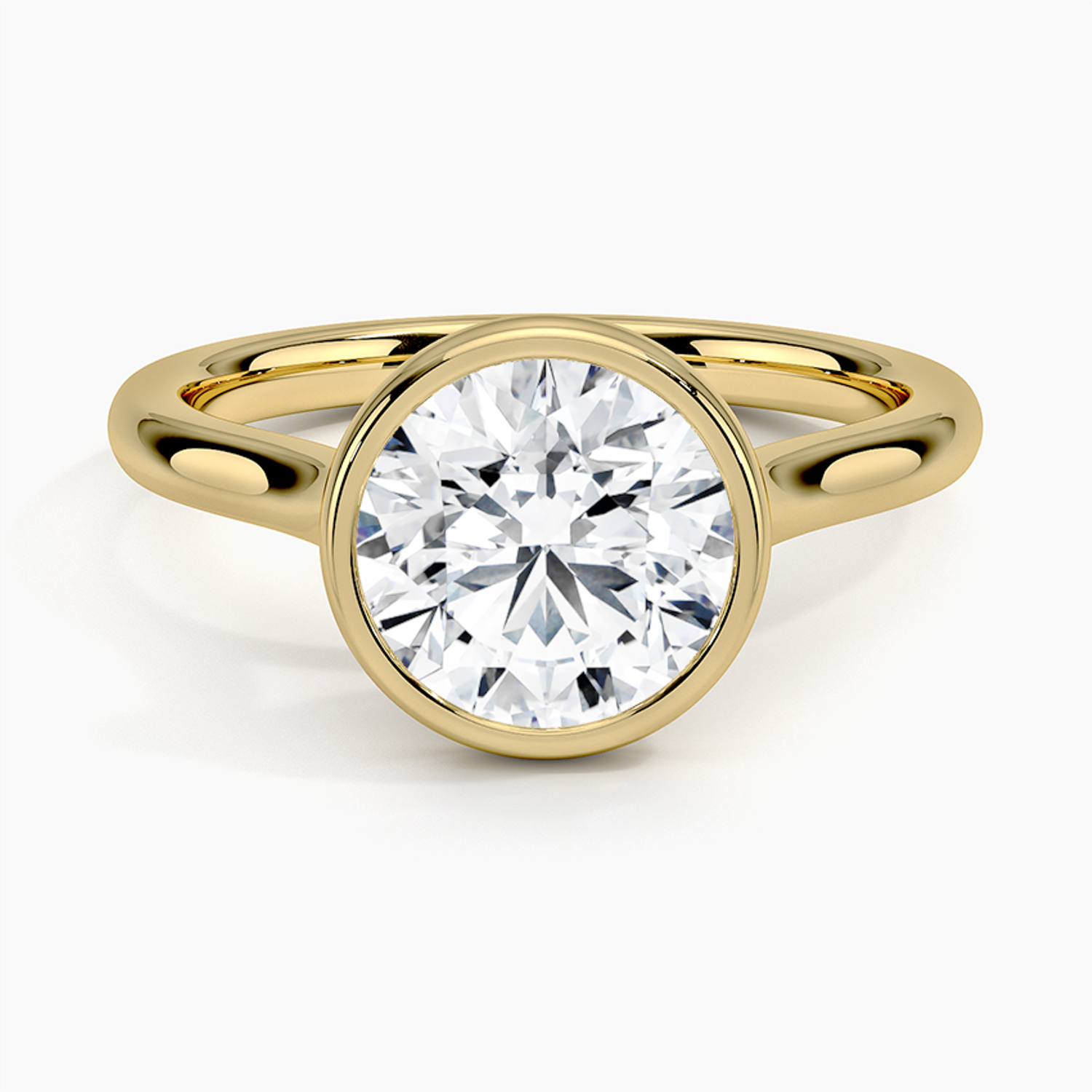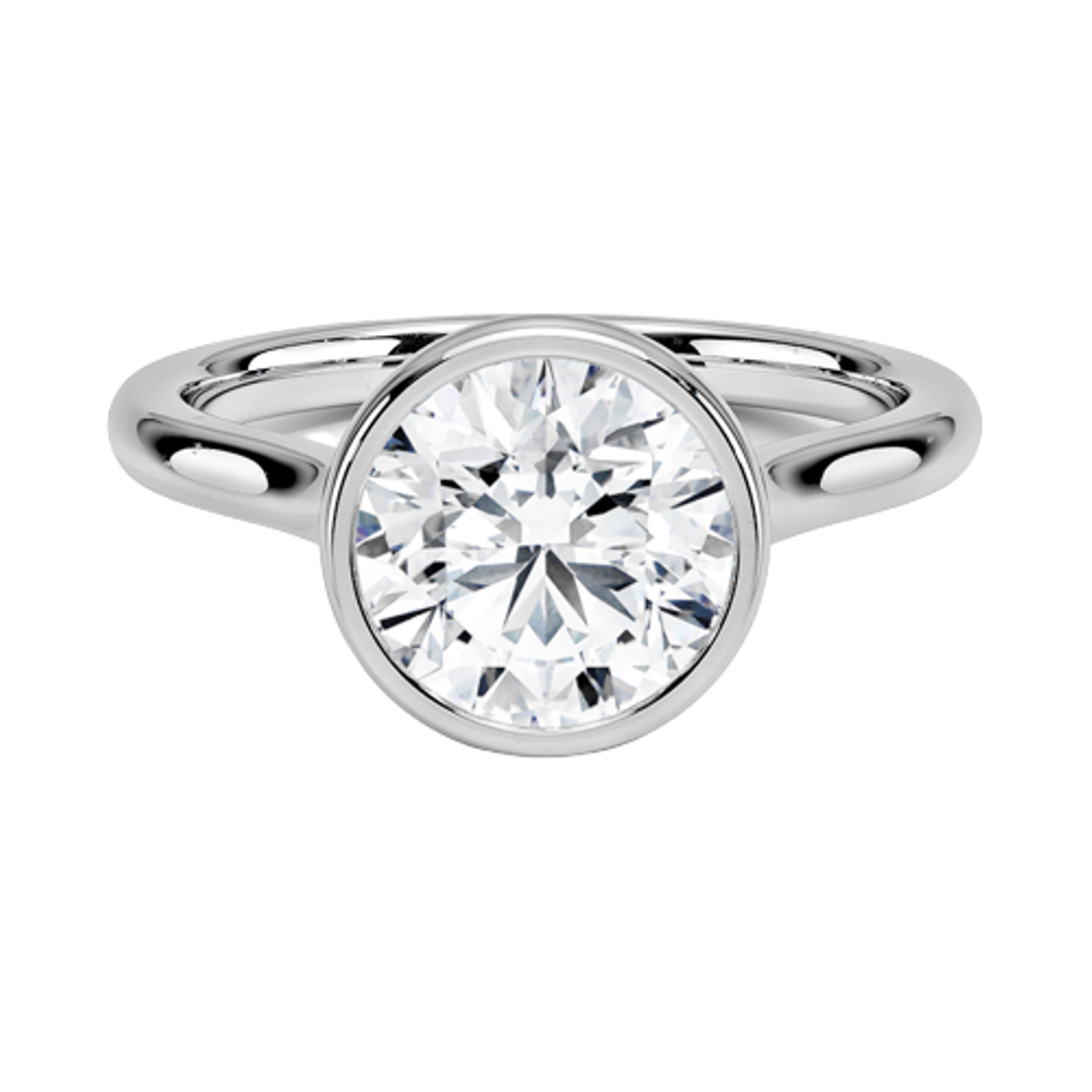This modern bezel-set solitaire diamond ring showcases a brilliant round-cut center stone in a sleek, polished white metal band. The smooth bezel setting enhances security while creating a contemporary, sophisticated silhouette that highlights the diamond’s radiant sparkle. Crafted for durability and daily elegance, this minimalist engagement ring offers a clean, refined look perfect for modern brides. Its timeless craftsmanship, exceptional brilliance, and seamless comfort fit make it an ideal choice for proposals, anniversaries, or luxury gifting. Elevate your style with this stunning bezel-set round diamond ring designed for lasting shine, beauty, and unforgettable moments.