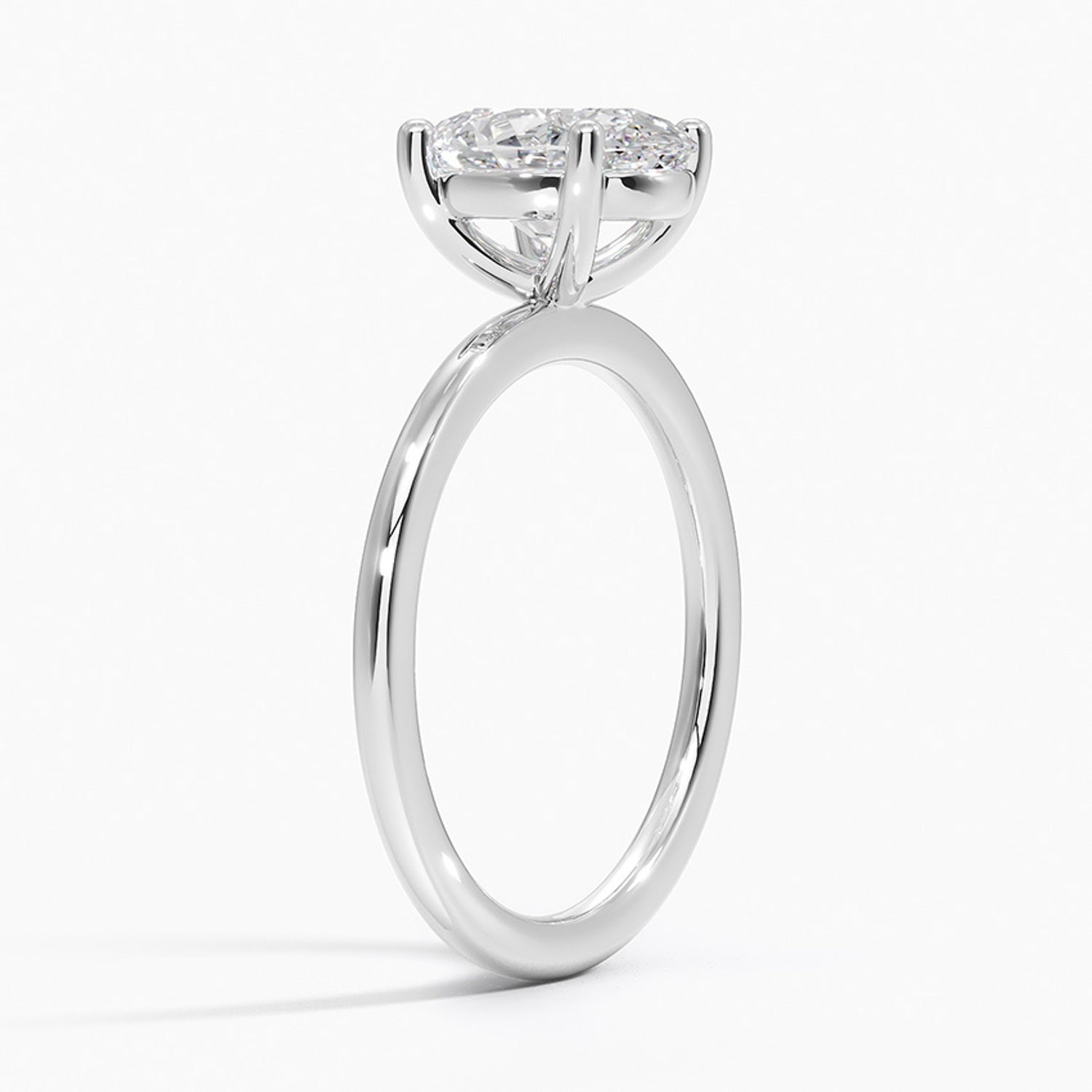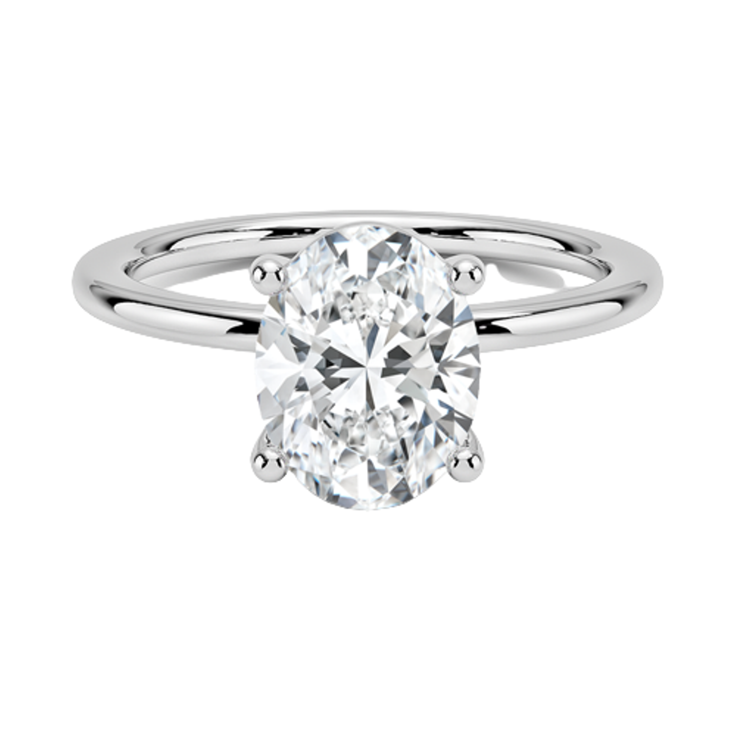 Minimalist elegance at its finest—Celestia Pure features a breathtaking oval diamond in a timeless solitaire setting crafted from polished white metal.