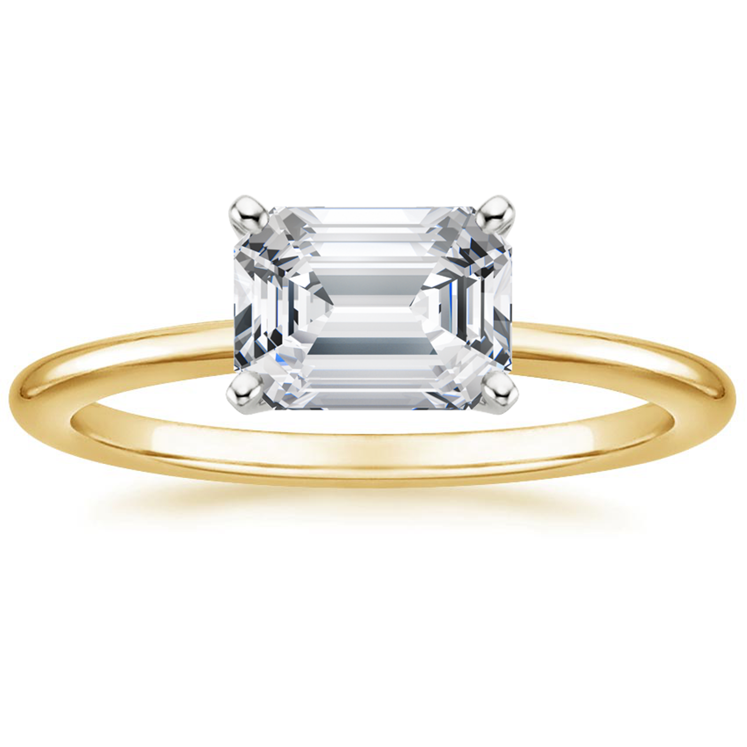 Solstice Grace is a minimalist masterpiece, showcasing an emerald-cut diamond in a classic four-prong setting with a smooth, polished band that radiates refined simplicity.