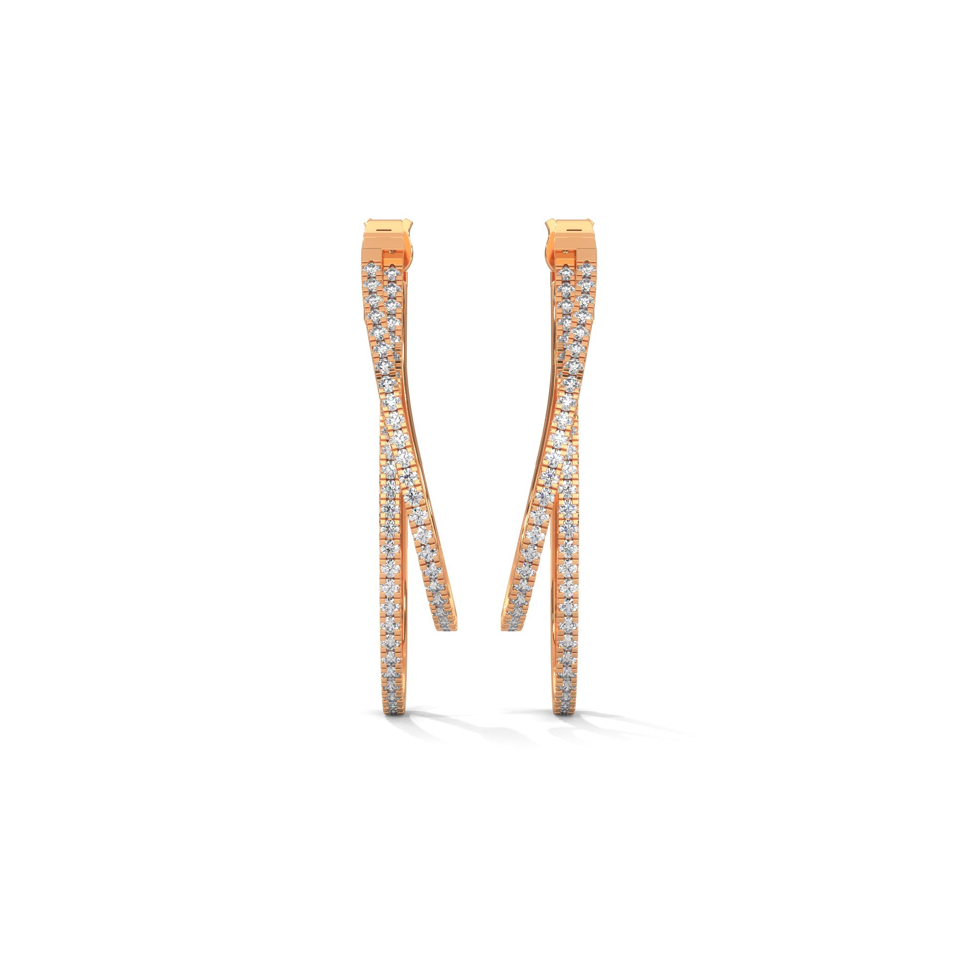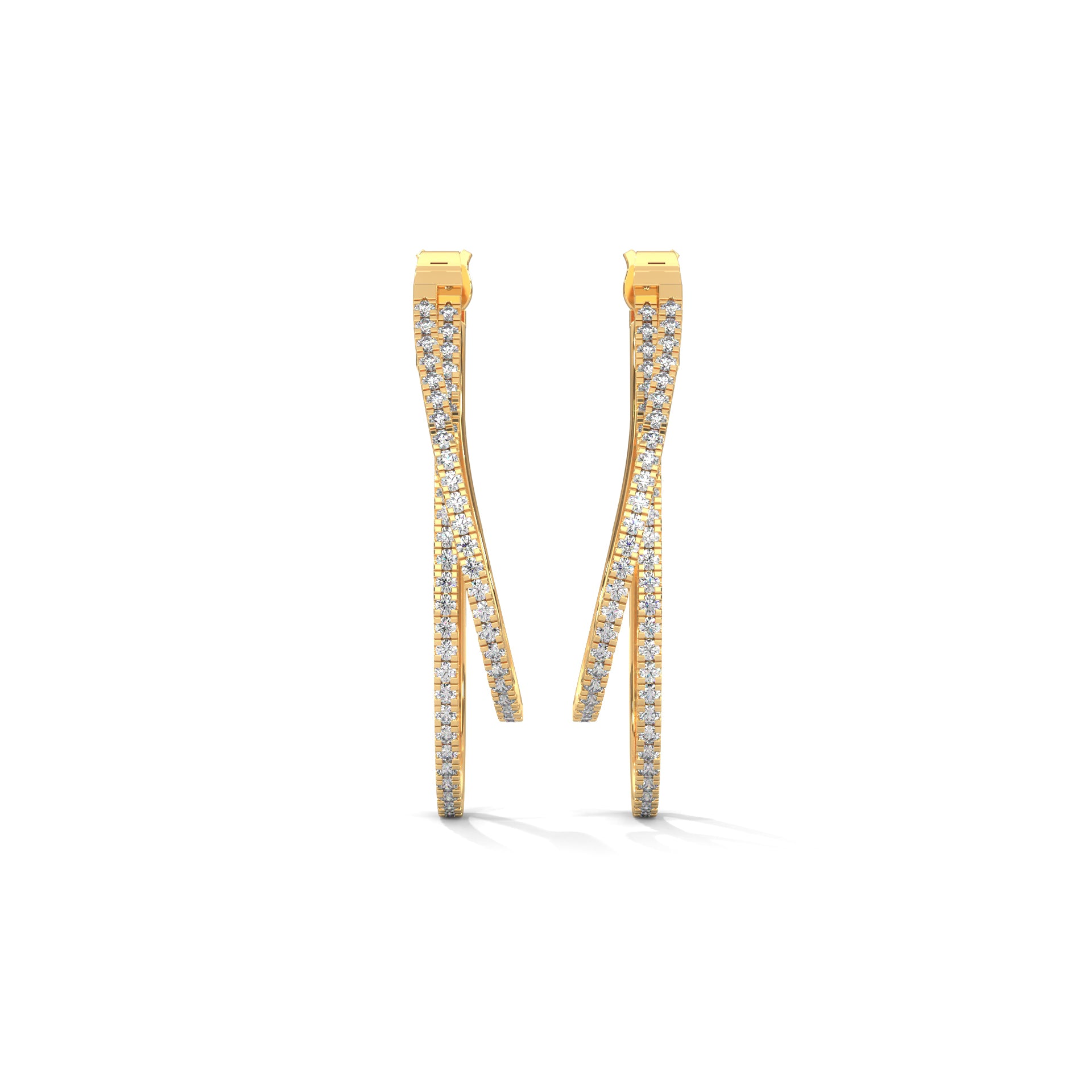 Elevate your look with the Dazzle Loop Diamond Hoops, where contemporary design meets classic charm. These unique hoop earrings feature a double-loop structure that creates a cascading effect, beautifully set with fine round-cut diamonds for maximum sparkle. Crafted in radiant yellow gold, the sleek silhouette and intricate diamond detailing add movement and elegance to every turn of your head. Perfect for festive occasions or elevating a chic everyday outfit, these earrings are a modern twist on timeless luxury.