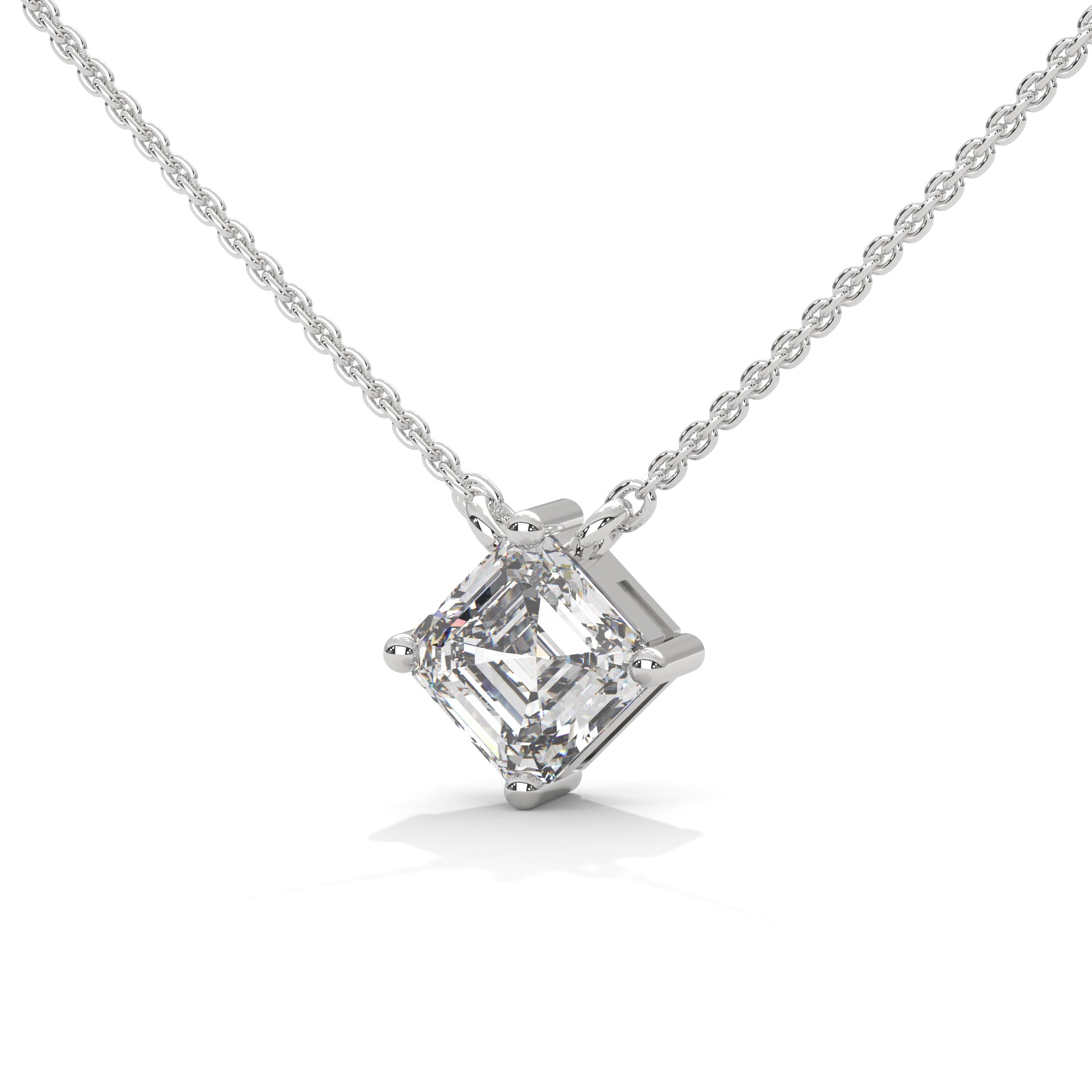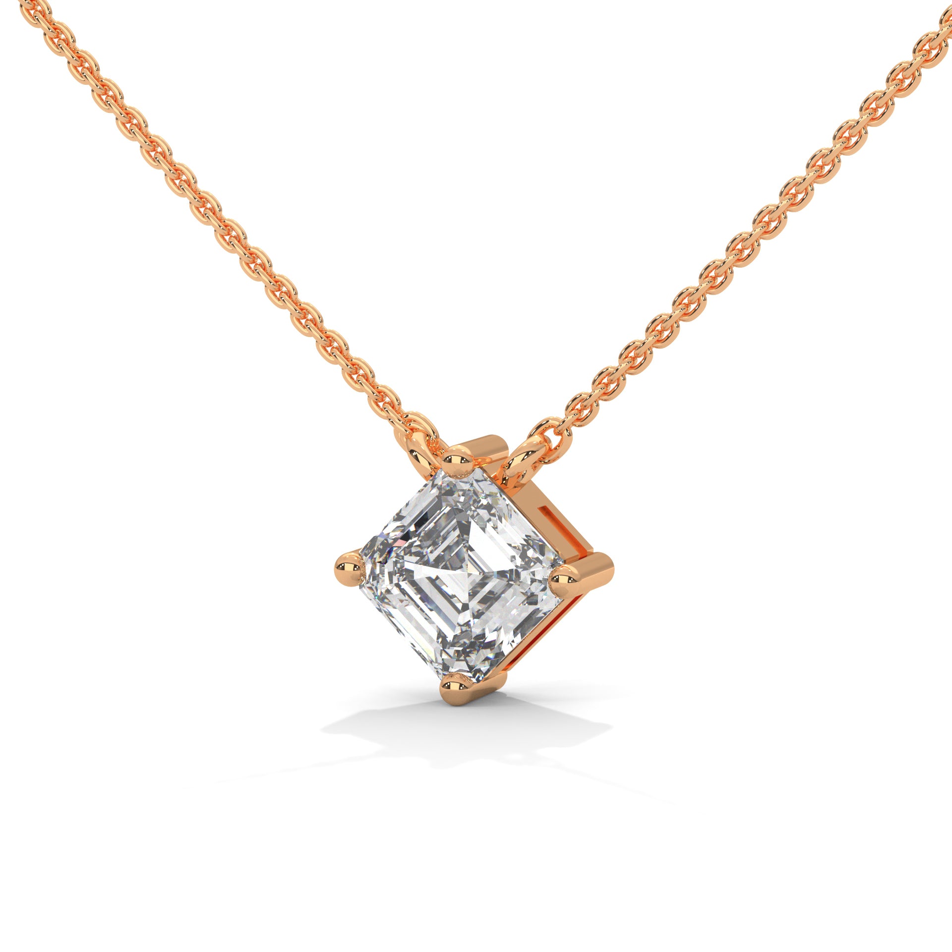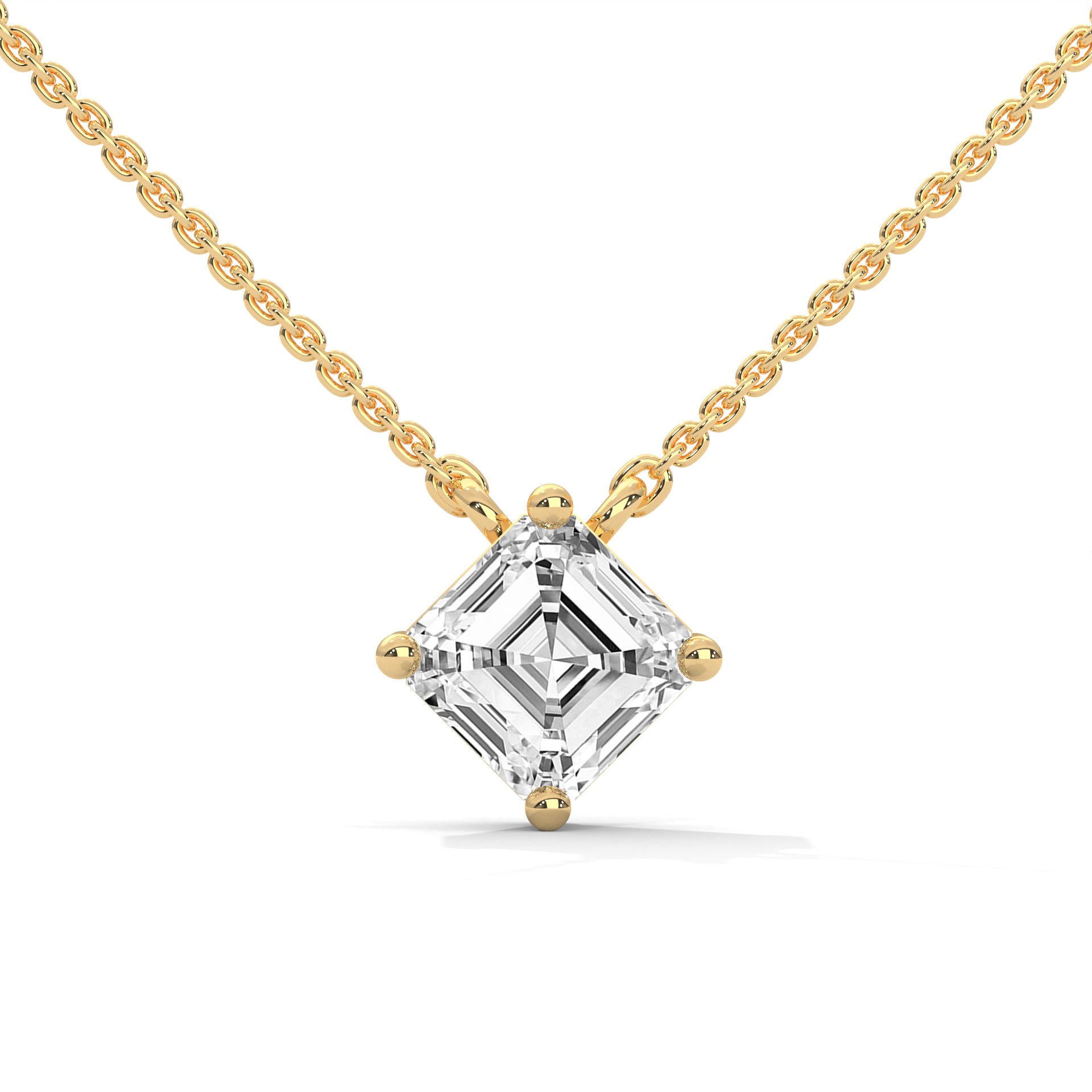 Asscher Cut Lab Grown Diamond Gold Pendant Chain