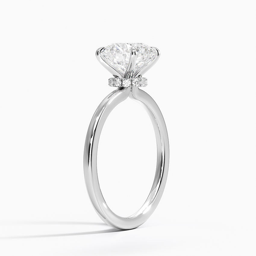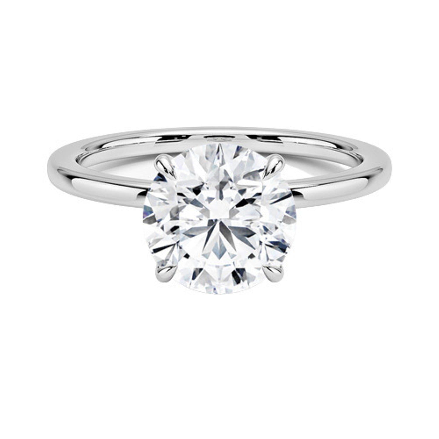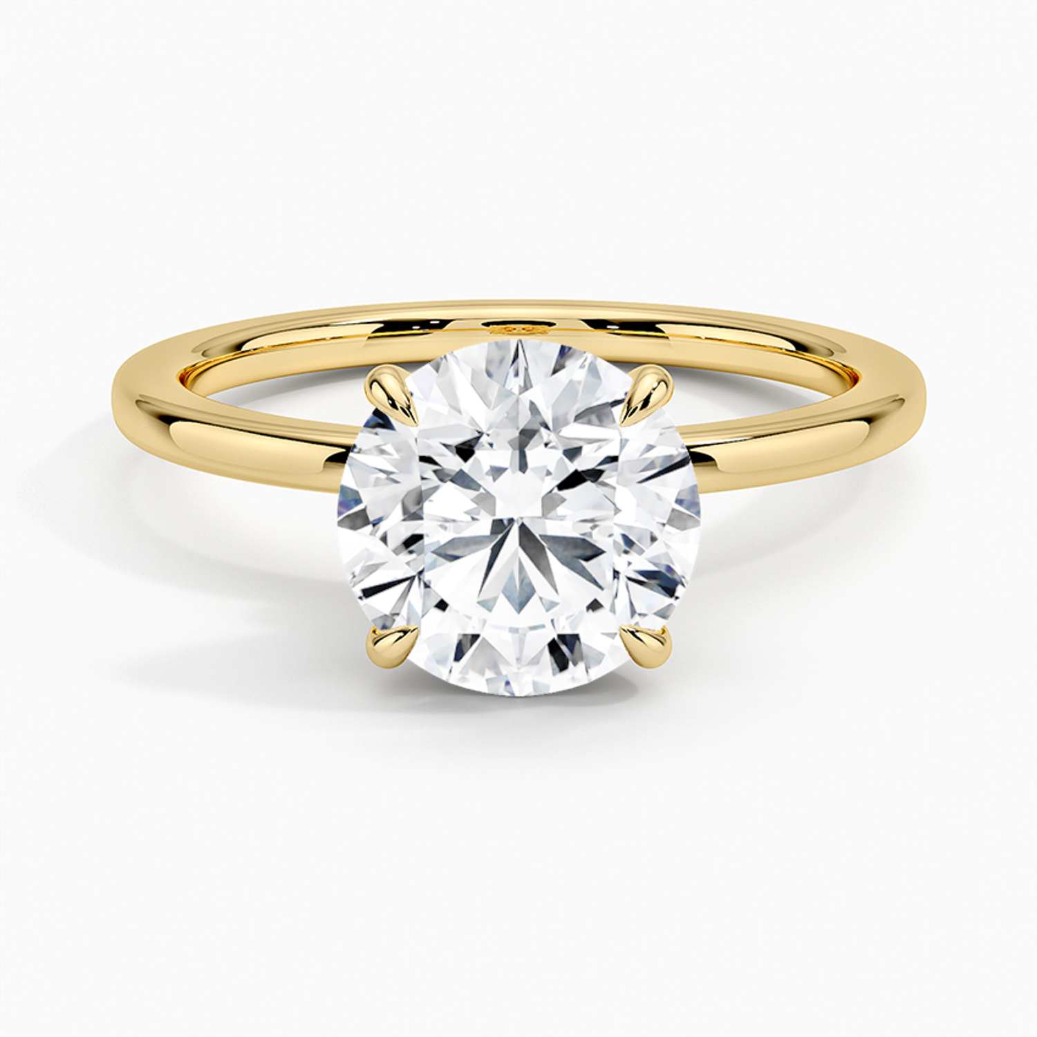 A round brilliant solitaire embraced by an intricate vine-inspired setting, intertwining elegance and organic artistry.