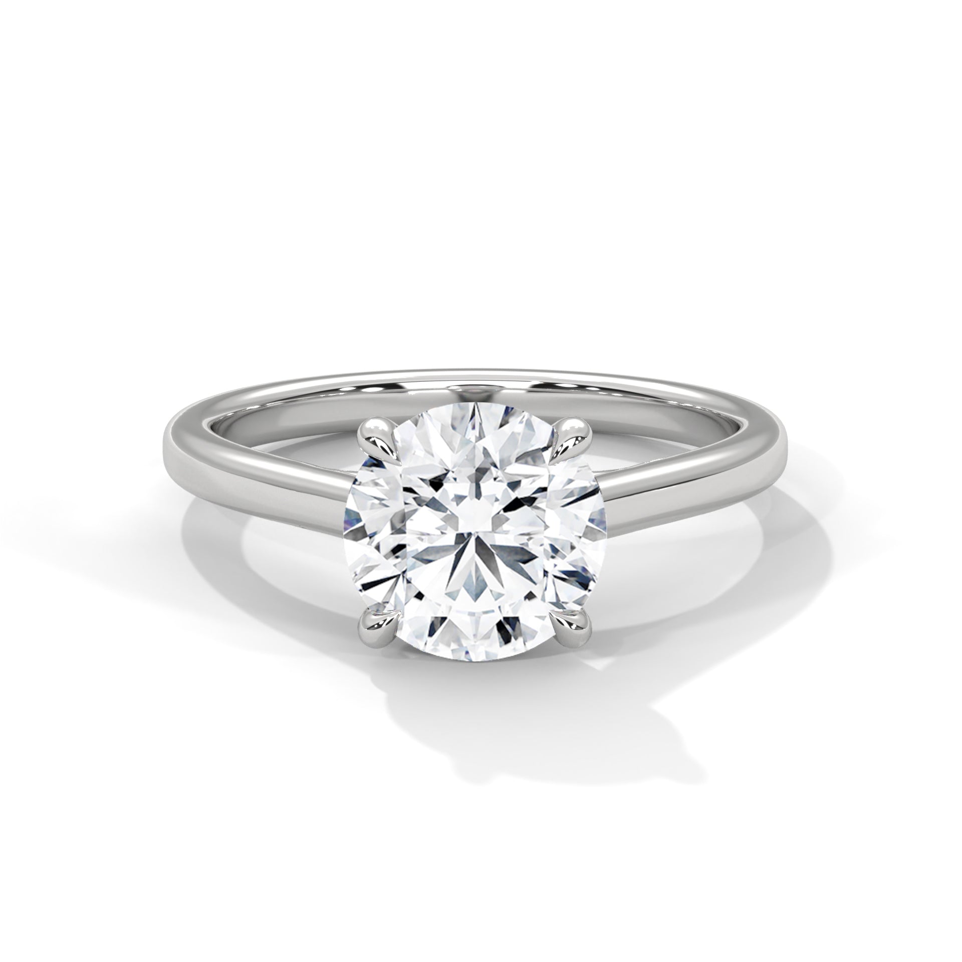 “Celeste Ring—round brilliant diamond sparkle, minimalist four-prong solitaire elegance, and timeless white-gold beauty crafted to symbolize pure love and lasting sophistication.”