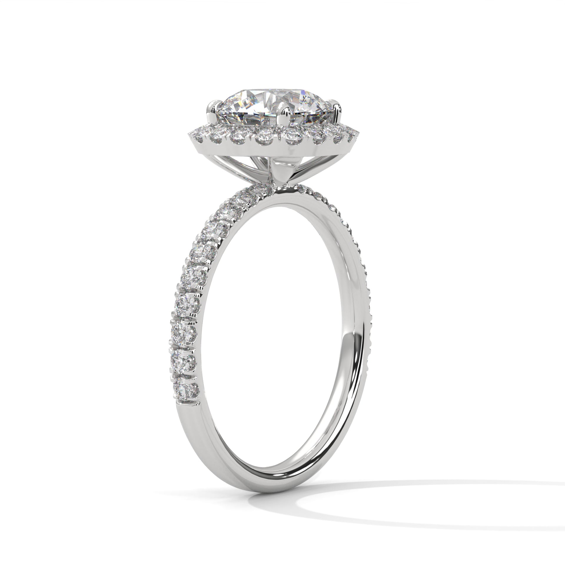 The Celestial Radiance Ring is a breathtaking symbol of eternal love, crafted to reflect timeless elegance and unmatched brilliance. At its center rests a magnificent round-cut diamond, celebrated for its exceptional clarity and sparkle. Surrounding the centerpiece is a luminous halo of pavé-set diamonds, expertly arranged to enhance its radiant glow. Crafted in high-quality white gold, the band offers durability, comfort, and a refined shine that elevates the ring’s luxurious appeal. Ideal for engagements, anniversaries, and special milestones, the Celestial Radiance Ring is designed to be cherished for generations—an exquisite piece that beautifully represents your everlasting love.