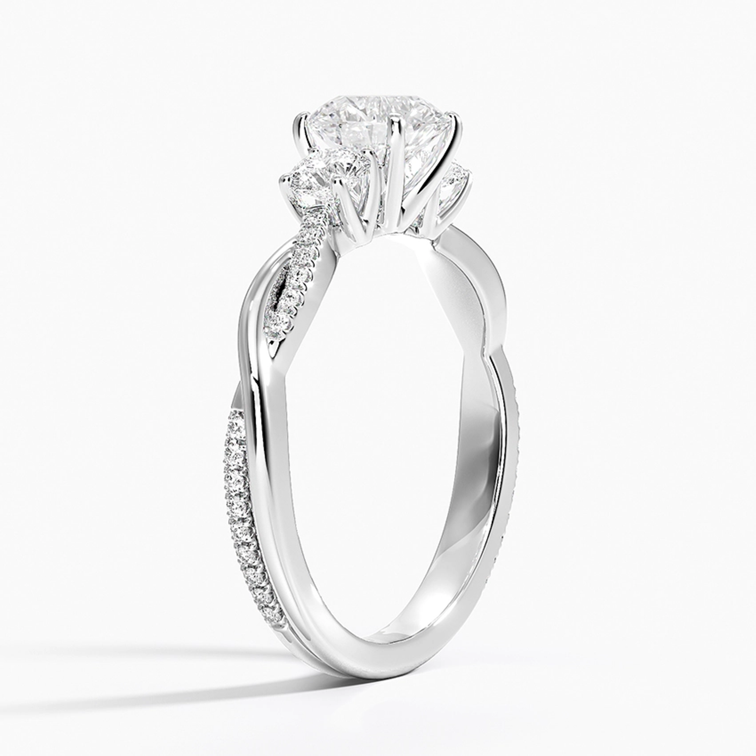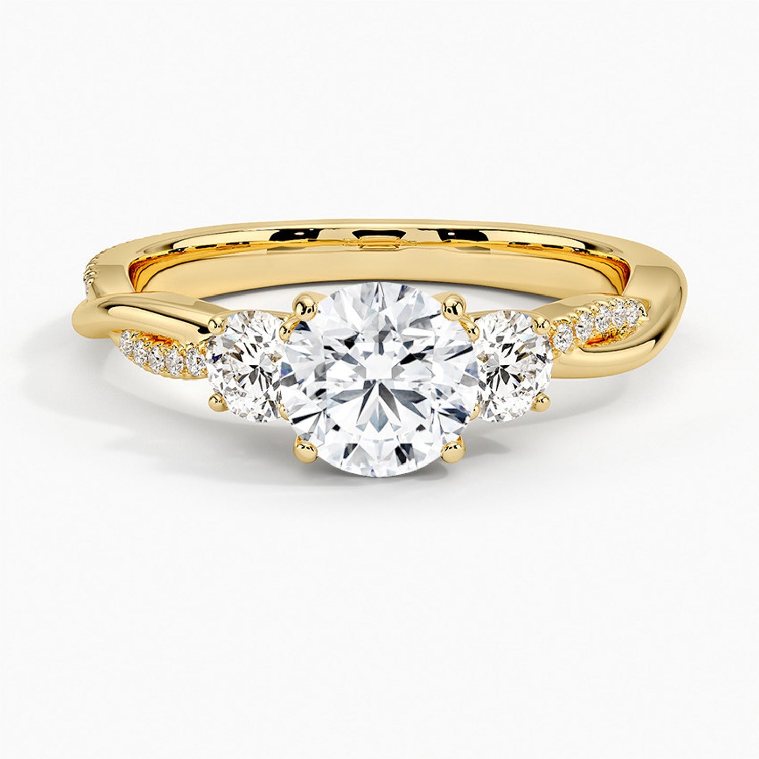 The Celestara Bloom ring is a vision of romantic brilliance. Featuring a round center diamond embraced by a floral six-prong setting, it blooms with intricate pavé-set diamonds along the twisting band. The design offers dimension and grace, symbolizing blossoming love and eternal light. Perfect for someone who cherishes delicate artistry with modern elegance.