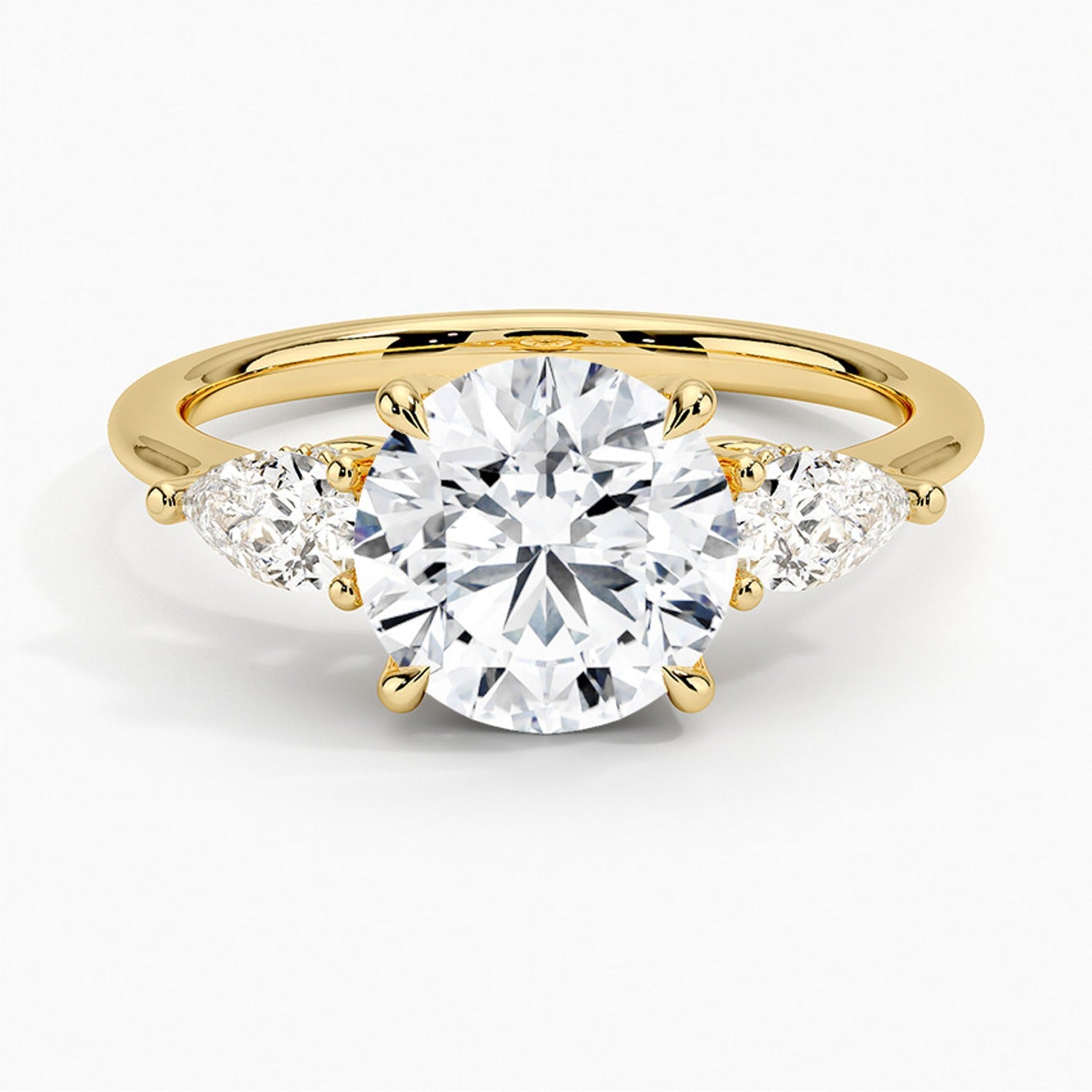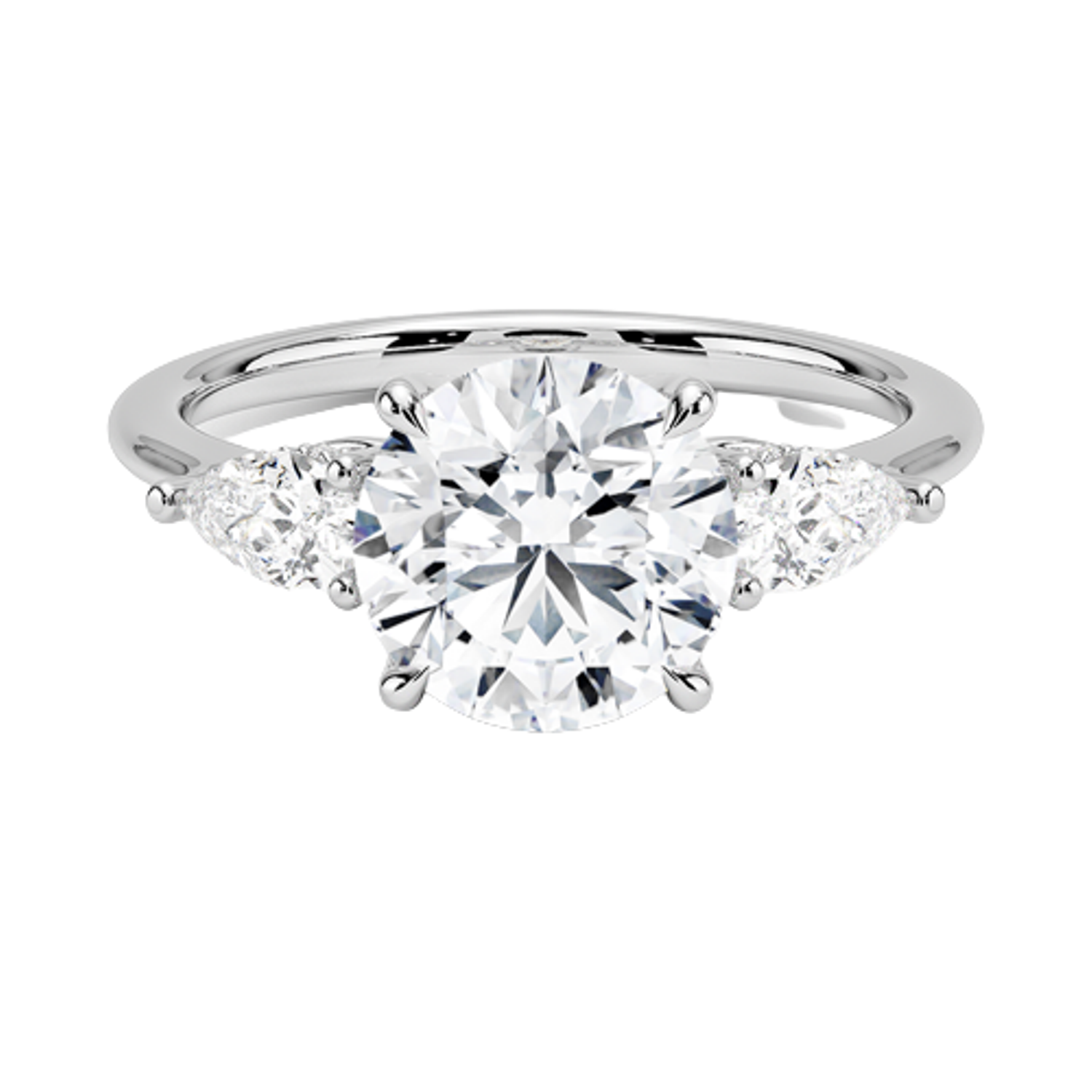 Inspired by the delicate beauty of nature’s first bloom, the Virelle Bloom ring combines sculptural grace with exceptional brilliance. A luminous round-cut center diamond captures the eye with its classic fire, while marquise side stones fan outward like petals kissed by morning light. The setting is elevated by pavé accents nestled into the gallery, adding sparkle from every angle without overwhelming the clean lines of the polished band. This design offers a poetic blend of timeless form and floral fantasy, perfect for the romantic at heart.