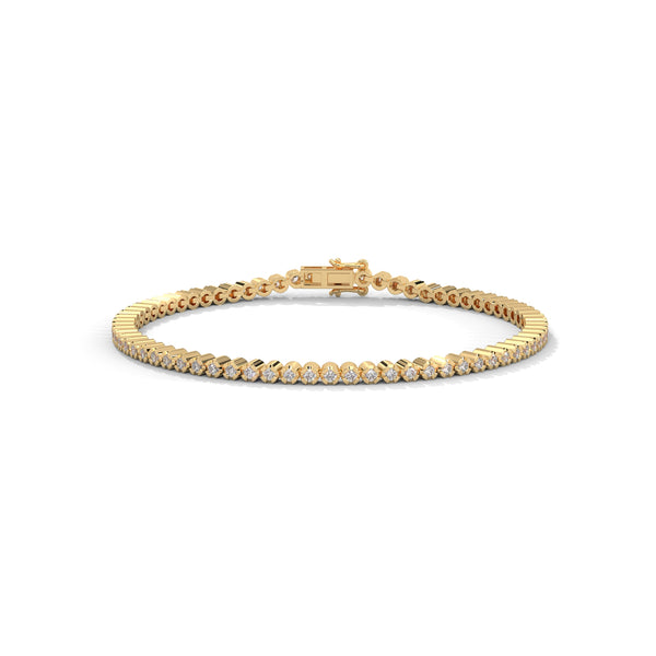 The Radiant Circle Bangle Bracelet is the perfect blend of elegance and sophistication. Crafted with 85 round-shaped diamonds, this exquisite bracelet weighs 1.98 carats, offering a brilliant display of sparkle. With a 7-inch length, it provides a comfortable and timeless fit, ideal for both casual and formal wear. Its smooth, sleek bangle design ensures it sits perfectly on your wrist, creating a refined, luxurious look. Whether you're dressing up for a special occasion or adding a touch of glamour to your everyday ensemble, this bracelet is sure to make a lasting impression.